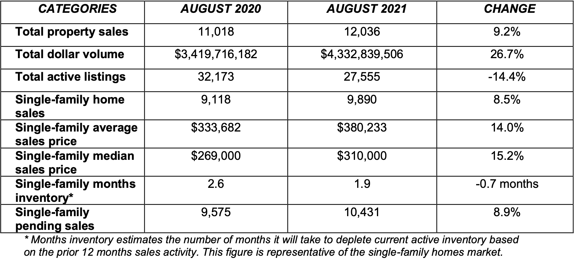 To compare the details of single-family home sales in August 2021 with August 2020, check out the chart below.