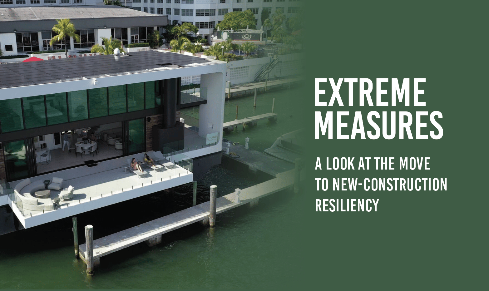 As architects and developers work to meet demand for housing that can weather the region’s devastating storms, innovative solutions have emerged that are generating buzz. One is Arkup’s Livable Yacht, launched at the Miami International Boat Show in 2019 and now available in two models. The 100% solar electric energy-powered dwelling features electric propulsion and navigation, can go from floating to self-lifting over the water and is designed to safely withstand a category 3 hurricane, according to Arkup CEO and cofounder Nicolas Derouin. The initial round of orders is already in the production phase, and the first Arkup 75 is privately owned and occupied in Miami. “Miami is a great example where issues like prohibitive pricing of waterfront properties and rising sea-level make life near water difficult,” Derouin says. “The advantage of Arkup is that it can sail to a safe harbor and be completely raised above the water on its four legs.” Prices for the smaller Arkup 40 model start at $800,000, while the larger Arkup 75 model starts at $4 million.