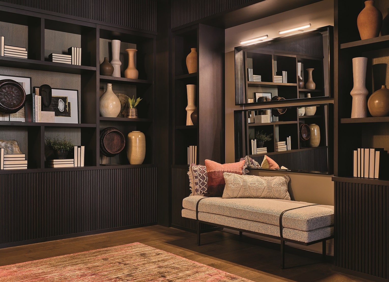 Another example from Tribune Tower Residences is a model our team created based on psychographic insights that travel is a priority for many of the building’s prospective buyers. Envisioning a hypothetical professional couple in their mid to late 40s who were avid travelers, our team designed the model with built-in display walls as an impactful way to showcase a collection of art and artifacts from around the world. The psychographic-informed design makes the home feel like it is inhabited by real, relatable people — and reflects an aspirational lifestyle that will resonate with prospective buyers.