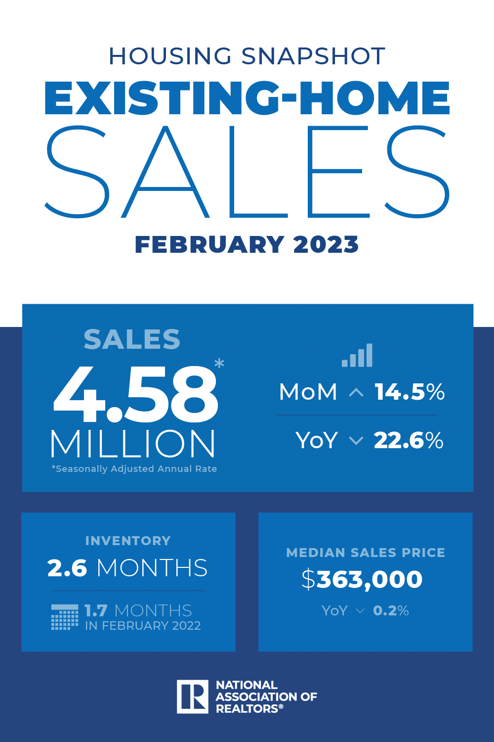 Existing-home sales broke a 12-month streak of declines in February, surging 14.5% compared to January and posting the largest monthly increase since July 2020, the National Association of REALTORS® said.