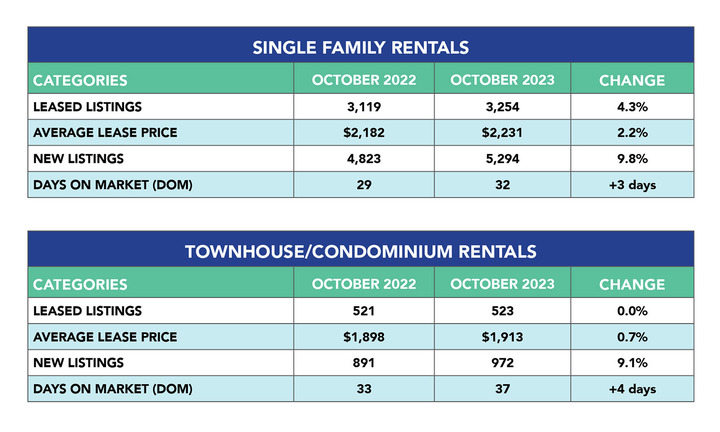 Single-family home rentals rose 4.3% year over year during October 2023. Meanwhile, 9.8% more home rentals added to the market and the time it took to lease a home increased from 29 to 32 days.