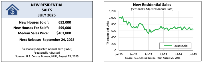 Months’ supply of new homes for sale in July was 9.2 months, the same as June and 16.5% more than the July 2024 level of 7.9 months.