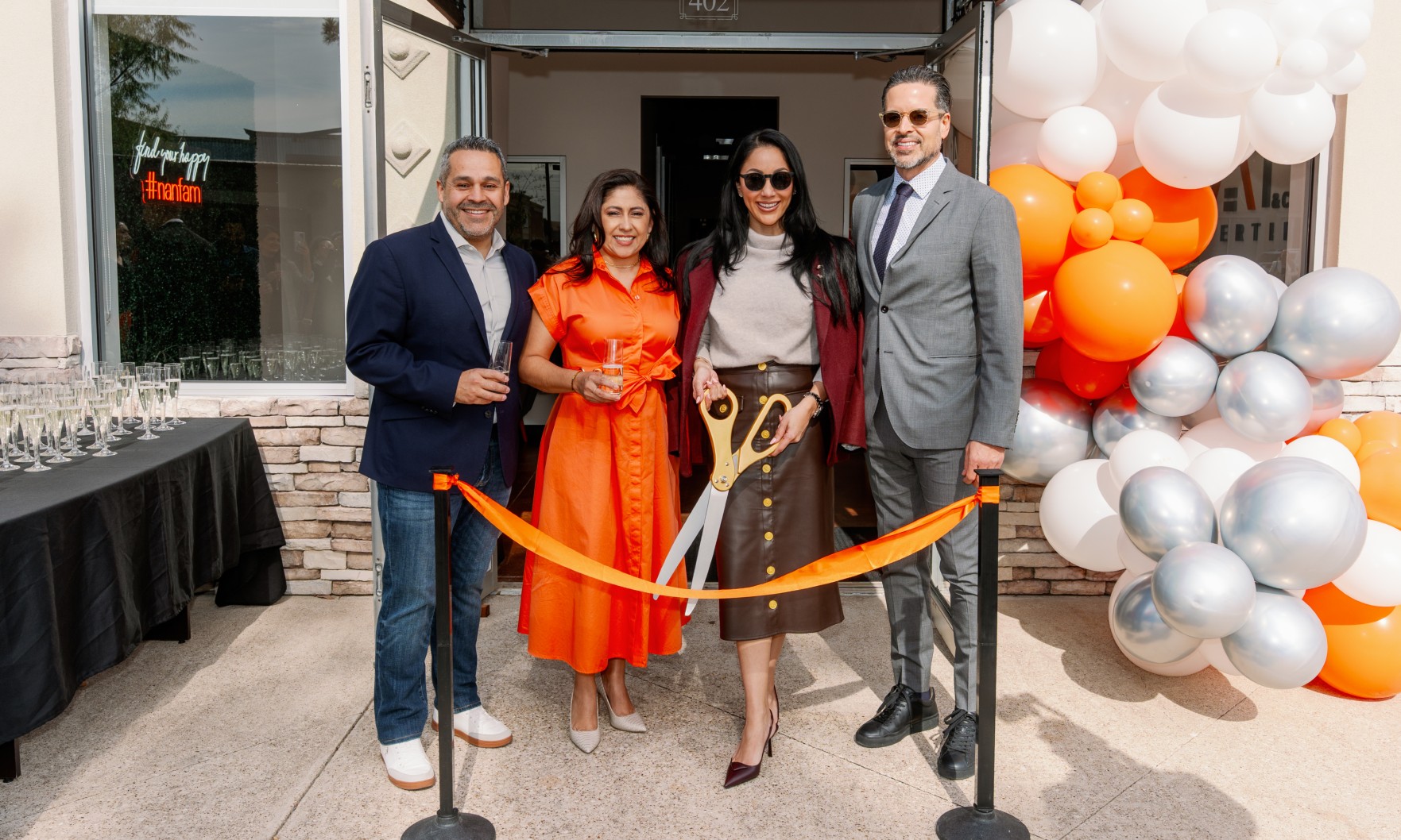 Co-founders Nancy and Jose Almodovar cut the ribbon, joined by office leadership Jenny Correa and David Bernal of The Jenny Correa Team.