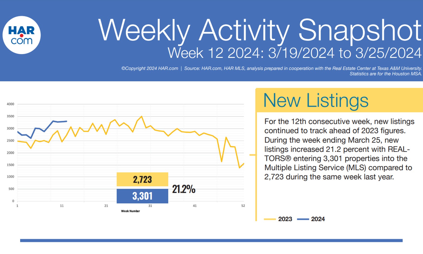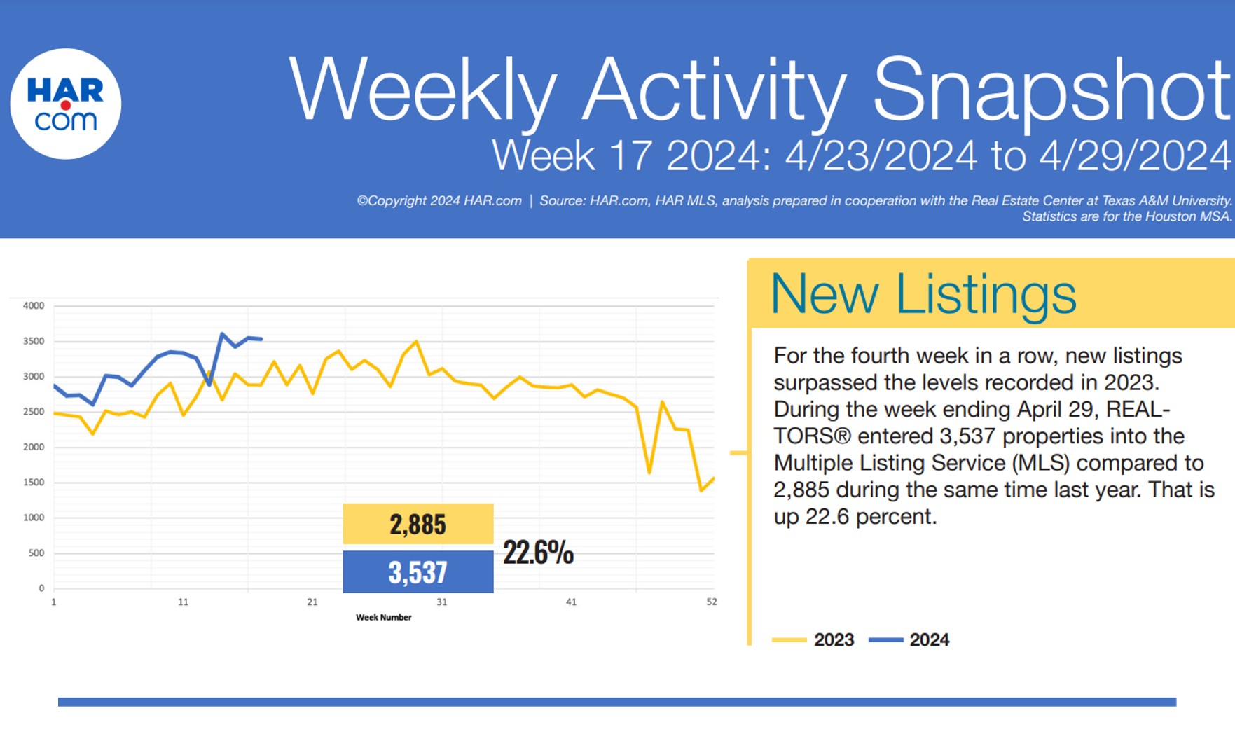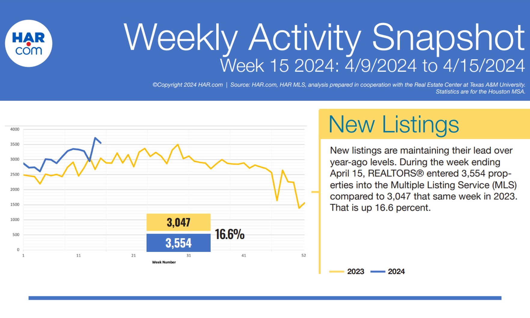 HAR: New listings maintain lead over year-ago levels